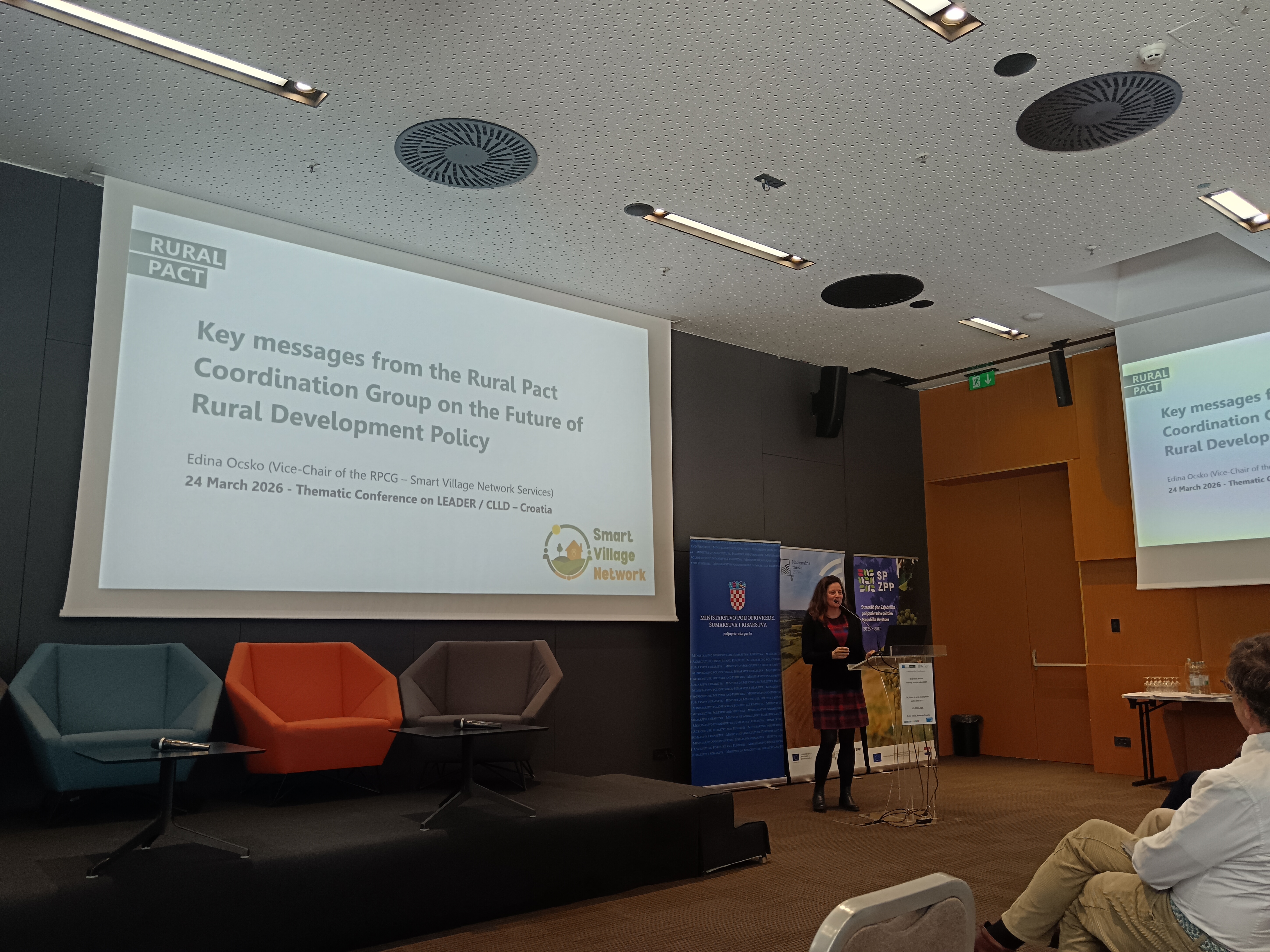 - Ključne poruke Koordinacijske grupe Ruralnog pakta o politici ruralnog razvoja i integriranim pristupima lokalnom razvoju / Key messages from the RPCG on rural development policy and integrated local development approaches – Edina Ocsko, EU Mreža Pametnih sela, potpredsjednica Koordinacijske grupe Ruralnog pakta / Smart Village Network Services, Vice-chair of the Rural Pact Coordination Group (RPCG) – EN