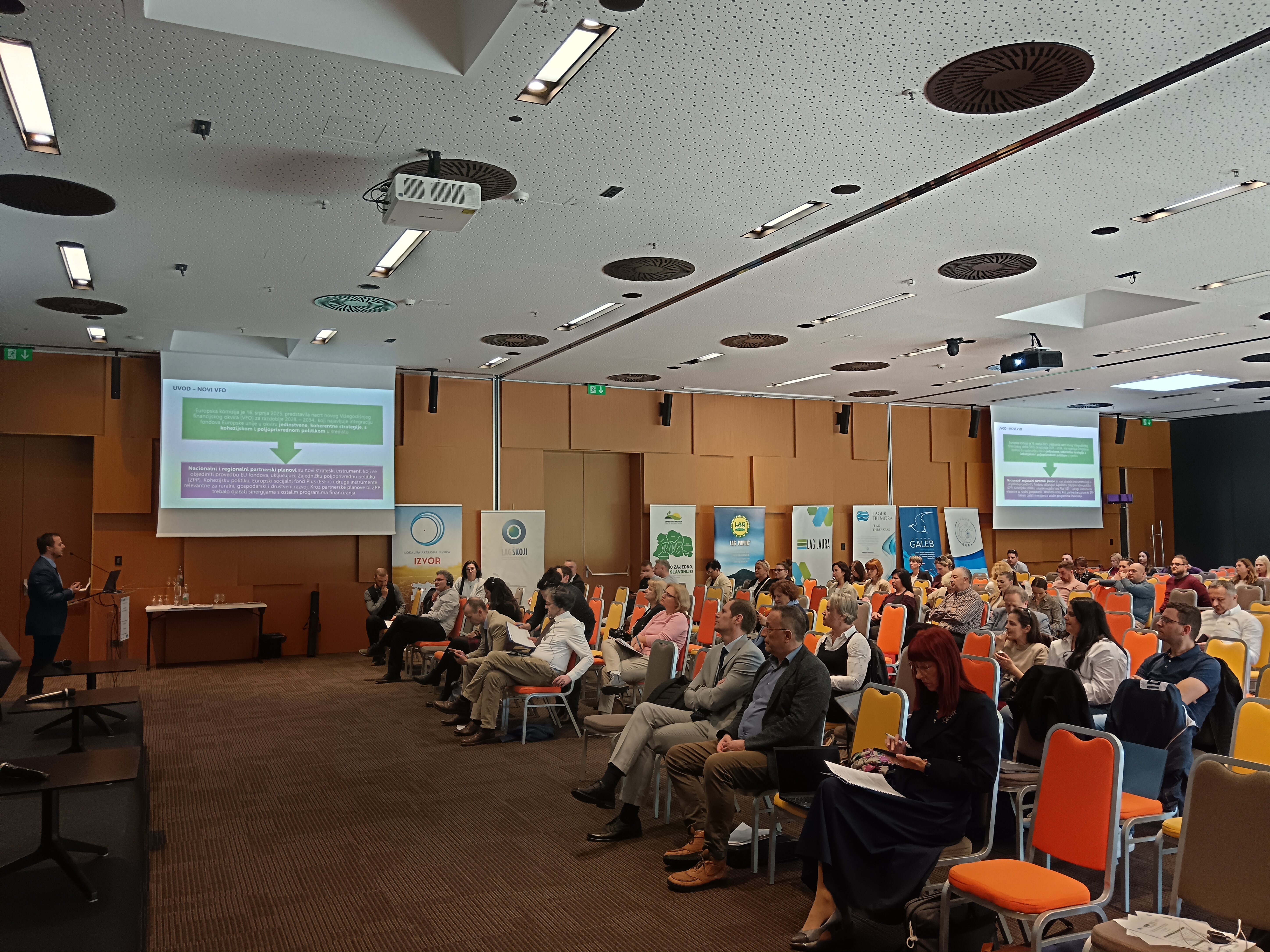 Središnji dio ovog događanja, 24. ožujka 2026. godine započeo je svečanim otvorenjem na najvišoj razini, a u okviru ovoga dijela programa sudionicima se obratio i predstavnik Uprave za potpore poljoprivredi i ruralnom razvoju Ministarstva poljoprivrede, šumarstva i ribarstva, dr.sc. Silvio Šimon, načelnik Sektora za provedbu mjera i intervencija ruralnog razvoja. U svojem je obraćanju naglasio važnost i ulogu Tematske radne grupe “LEADER/CLLD”, odnosno vrijedan doprinos ove grupe usmjeravanju politika i provedbi Strateškog plana ZPP-a, ali i pripremi za novo programsko razdoblje. Istaknuo je i značajnu ulogu LAG-ova u svojim lokalnim zajednicama u kojoj vidi sponu između nacionalnih i lokalnih politika i priliku za rast i prosperitet.