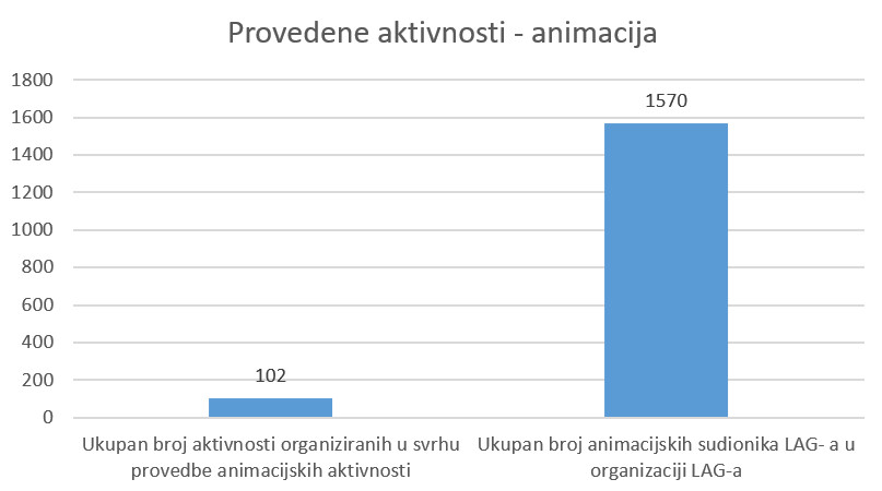 U prethodnoj godini, LAG-ovi su organizirali ukupno 102 aktivnosti u svrhu provedbe animacijskih aktivnosti s ukupnim brojem sudionika od 1570 osoba.