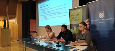 Ravnatelj Uprave za potpore poljoprivredi i ruralnom razvoju Goran Lipavić i ravnateljica Uprave za poljoprivrednu politiku, EU i međunarodnu suradnju Anita Sever Koren sa suradnicima održali prezentaciju i popratnu raspravu sa sudionicima na temu strategije pravednije raspodjele i efikasnijeg usmjeravanja potpore dohotku ciljanoj skupini aktivnih poljoprivrednika.